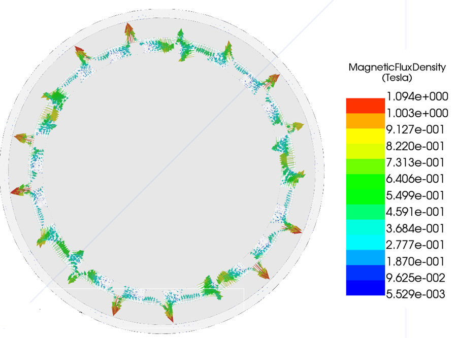 These results indicate that steel saturation is an active limiting factor in the current design and should be considered when optimizing modulation segment geometry, back-iron thickness, or material grade.
