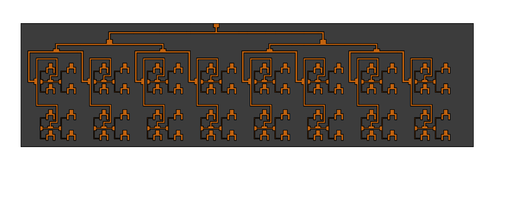 The antenna array is composed of 64 interconnected antennas using power dividers. The array is excited through a 50-? feed network. It has an overall dimension of 30 × 110 mm².