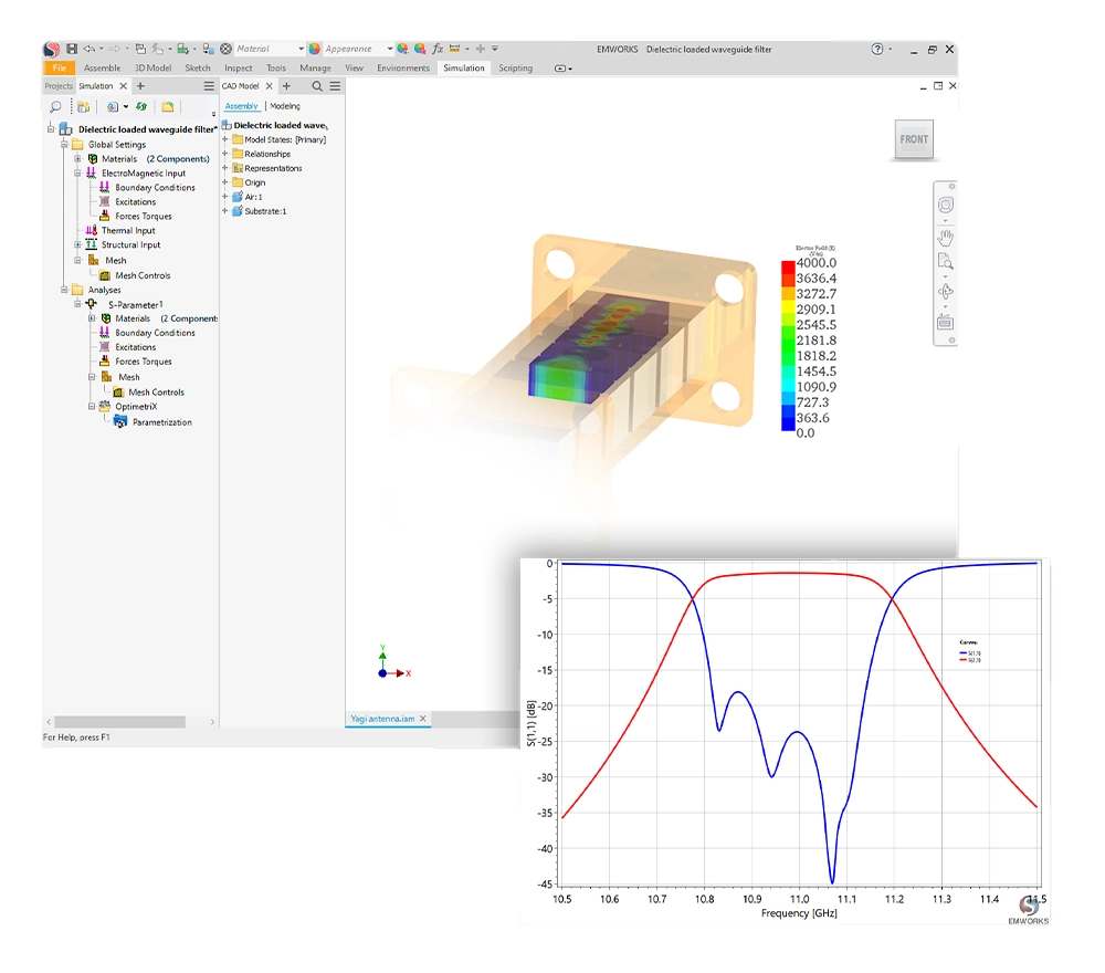 Berechnen Sie S-Parameter in Abhängigkeit von der Frequenz in EMWORKS für Steckverbinder, Filter, Übertragungsleitungen, Antennen und PCB-Interconnects.